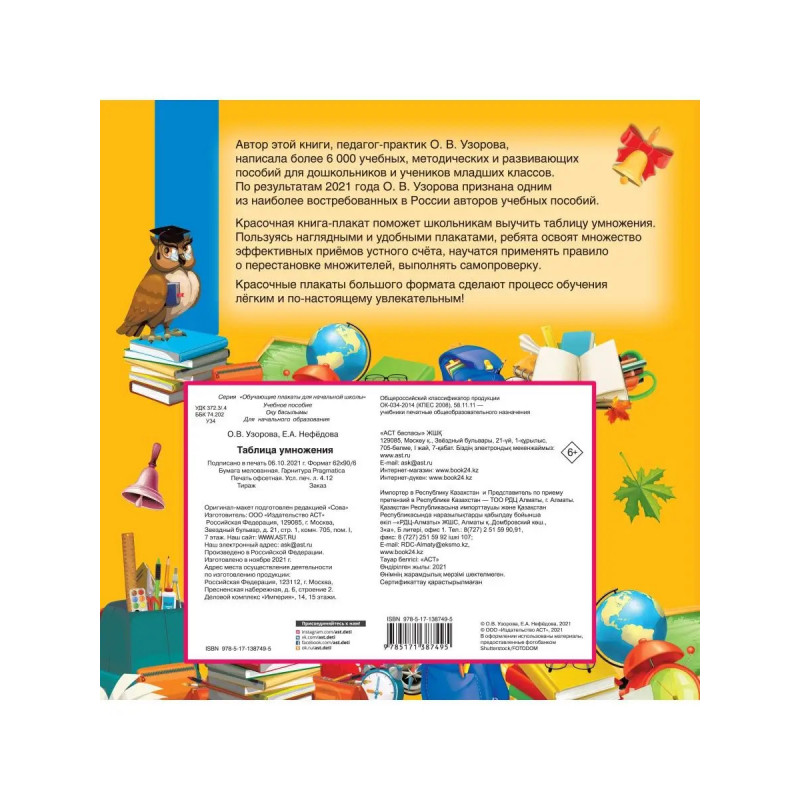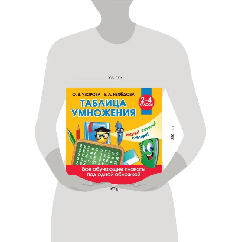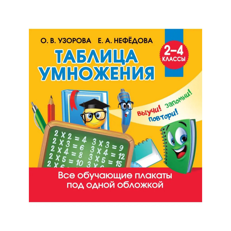 О чём эта книгаТаблица умножения это наглядное и удобное пособие по математике для учеников младших классов. Пользуясь красочной книгой-плакатом, школьники запомнят таблицу умножения. Изучение материала, представленного в пособии, позволит учащимся успешно подготовиться к контрольным и проверочным работам.Кому эта книга будет интереснаНезаменимое пособие для учащихся начальной школы.Каковы особенности этой книги Автор пособия О. В. Узорова, известный педагог-практик, автор более 6 000 пособий для дошкольников и учеников младших классов. Плакаты можно использовать для занятий дома и для работы в классе. Красочное оформление и большой формат.