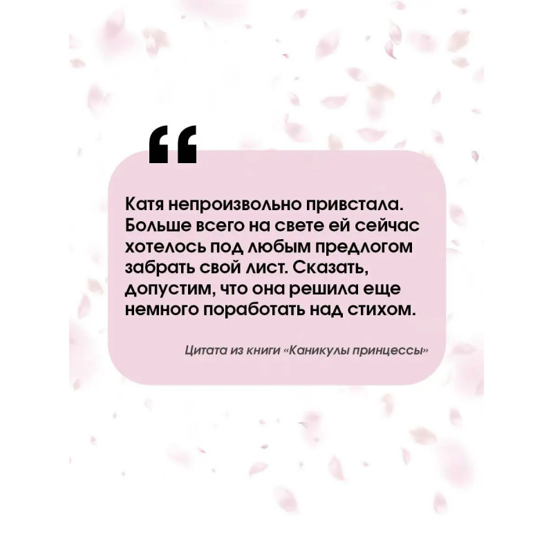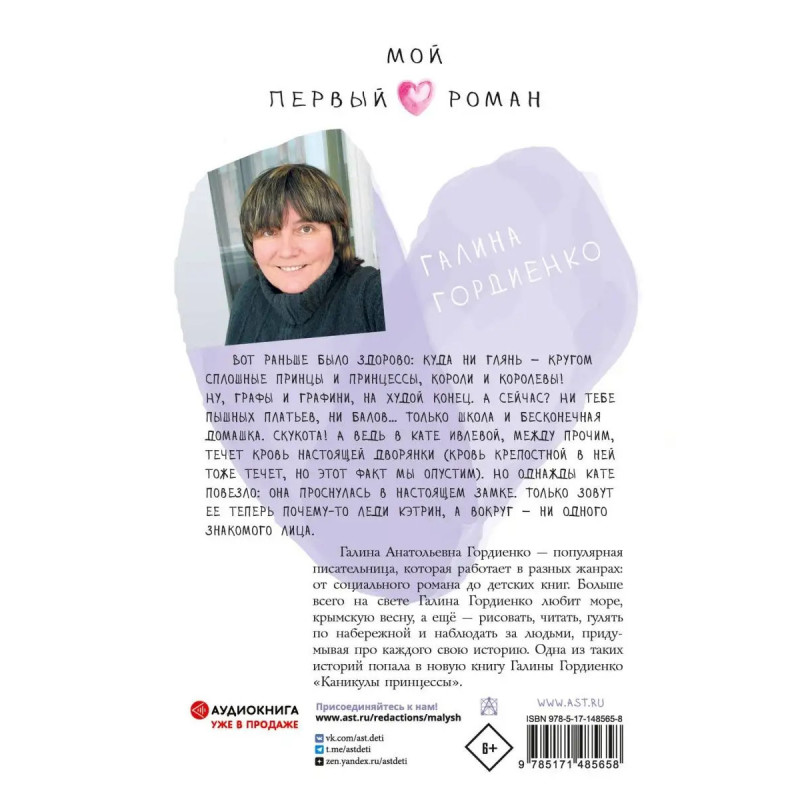 Катя Ивлева обычная тринадцатилетняя девчонка. Она ходит в школу, скучает на уроках и мечтает о красивой жизни. Однажды Катя узнала, что в роду у нее были дворяне. И если бы не революция 1917 года, сейчас она бы кружилась на балу в пышном платье, а не сидела за партой. "Каникулы принцессы" Галины Гордиенко это история о том, что наши мечты имеют свойство сбываться. Но так ли это здорово? Для среднего школьного возраста.