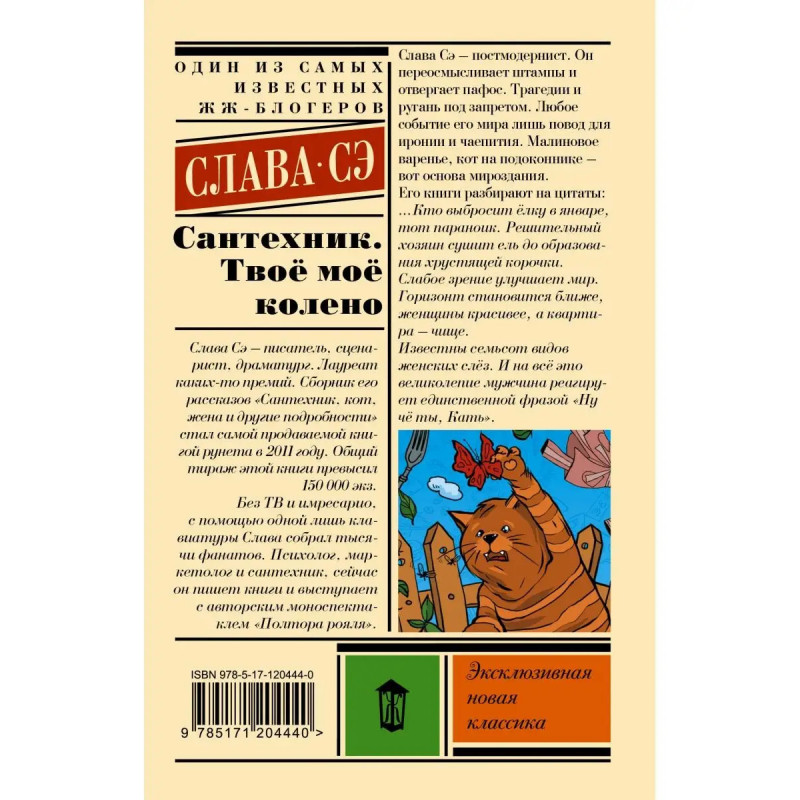Один из самых известных ЖЖ-блогеров. Лучшее лекарство от хандры и депрессии. Слава Сэ - псевдоним латвийского автора Вячеслава Солдатенко, пишущего на русском языке. По образованию он психолог, работает сантехником. А также играет на гитаре, выступая с концертами в театре и пишет книги Благодаря хорошему чувству юмора и качеству своей литературы его книги очень популярны. Люди соскучились по таким авторам! Он пишет живо и образно. А главное, смешно!!! Сантехник, его кот, жена и другие подробности. Первый тираж этой книги, 3 экземпляров, был раскуплен за несколько дней. Сборник рассказов о жизни, о себе и не только Вот, собственно, из чего состоит эта книга. Ну очень незамысловатые истории. И блистательный юмор, житейская философия, самоирония и спокойное, добродушное отношение к житейским неурядицам и проблемам. Улыбнитесь, всё, что ни происходит - к лучшему!