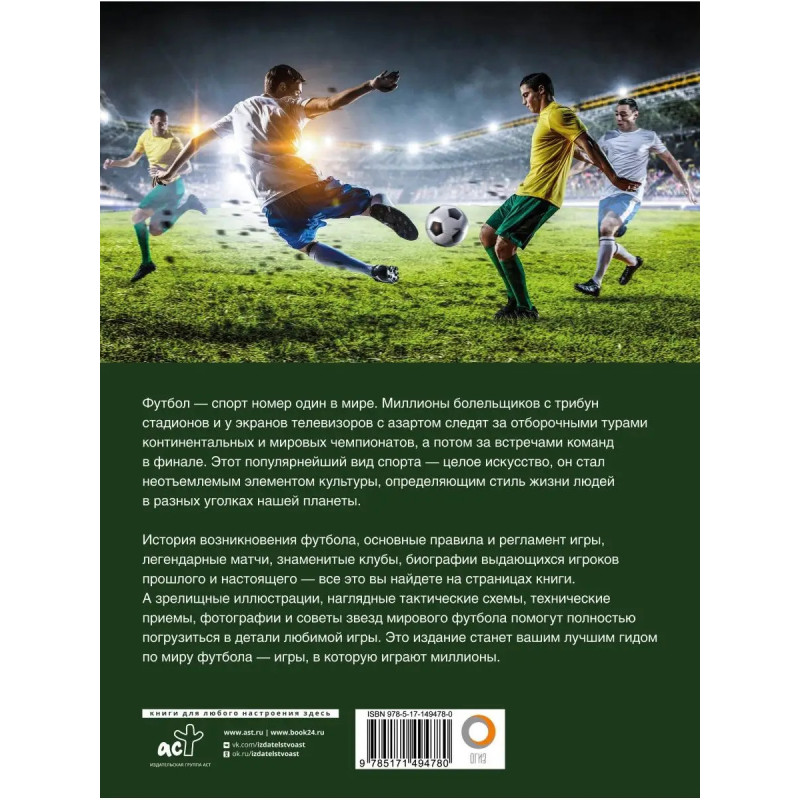 Футбол спорт номер один в мире. Миллионы болельщиков с трибун стадионов и у экранов телевизоров с азартом следят за отборочными турами континентальных и мировых чемпионатов, а потом за встречами команд в финале. Этот популярнейший вид спорта целое искусство, он стал неотъемлемым элементом культуры, определяющим стиль жизни людей в разных уголках нашей планеты. История возникновения футбола, основные правила и регламент игры, легендарные матчи, знаменитые клубы, биографии выдающихся игроков прошлого и настоящего все это вы найдете на страницах книги. А зрелищные иллюстрации, наглядные тактические схемы, технические приемы, фотографии и советы звезд мирового футбола помогут полностью погрузиться в детали любимой игры. Это издание станет вашим лучшим гидом по миру футбола игры, в которую играют миллионы.