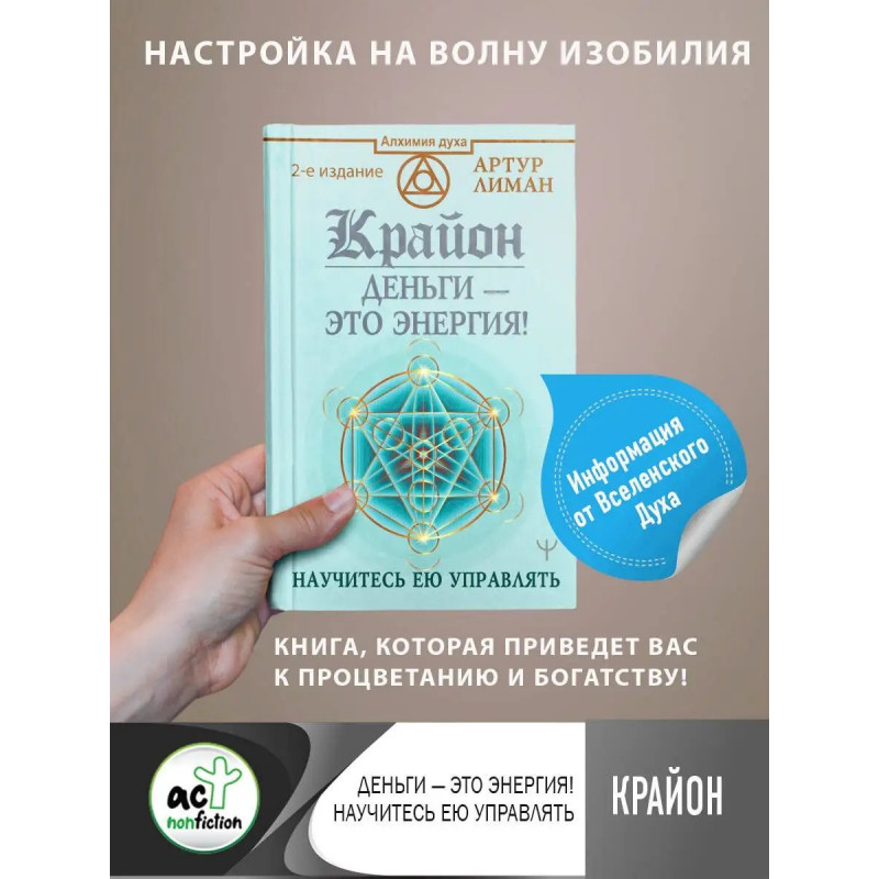 Книга-тренинг Артура Лимана Крайон. Деньги это энергия! Научитесь ею управлять составлена на основе посланий Крайона духовной сущности, открывающей человечеству путь к духовному росту и обретению достойной, изобильной, благополучной и счастливой жизни в достатке. Практики, предложенные в книге, дают доступ к изобилию Вселенной и учат пониманию духовной и энергетической сущности денег. Божественный дух Крайон напоминает нам один из главных законов Вселенной: счастье, и достаток, и благополучие доступны для всех!