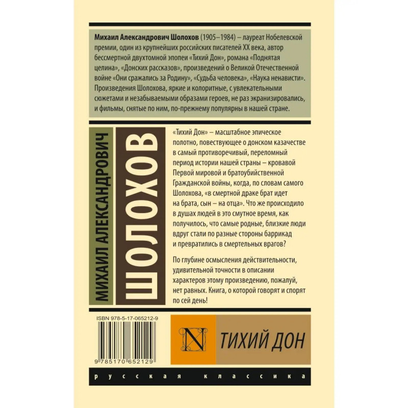 "Тихий Дон" масштабное эпическое полотно, повествующее о донском казачестве в самый противоречивый, переломный период истории нашей страны кровавой Первой мировой и братоубийственной Гражданской войны, когда, по словам самого Шол.оxова, "в смертной драке брат идет на брата, сын на отца". Что же происходило в душах людей в это смутное время, как получилось, что самые родные, близкие люди вдруг стали по разные стороны баррикад и превратились в смертельных врагов? По глубине осмысления действительности, удивительной точности в описании характеров этому произведению, пожалуй, нет равных. Книга, о которой говорят и спорят по сей день!