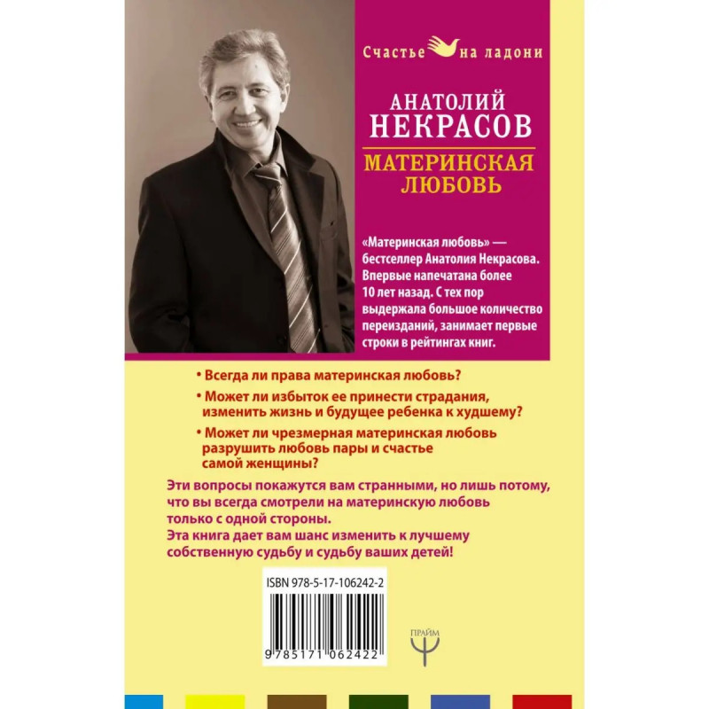 Перед вами новое издание знаменитого бестселлера Анатолия Некрасова "Материнская любовь". Эта книга выдержала десятки переизданий, о ней написаны сотни читательских отзывов. "Меняет жизнь!", "Открывает глаза!", "Путь из тупика" вот что чаще всего говорят об этой книге читатели. Вы узнаете о материнской любви, в том числе и о тех ее проявлениях, которые приносят множество страданий и горя и родителям, и детям, и обществу в целом. Вам покажется это странным, но вы просто не смотрели на материнскую любовь "с другой стороны". Исследований такой глубины на эту тему еще не было. Эта книга для каждой семьи, потому что она показывает, в чем истинная причина семейных проблем и какую "работу над ошибками" нужно сделать, чтобы стать счастливым и успешным.