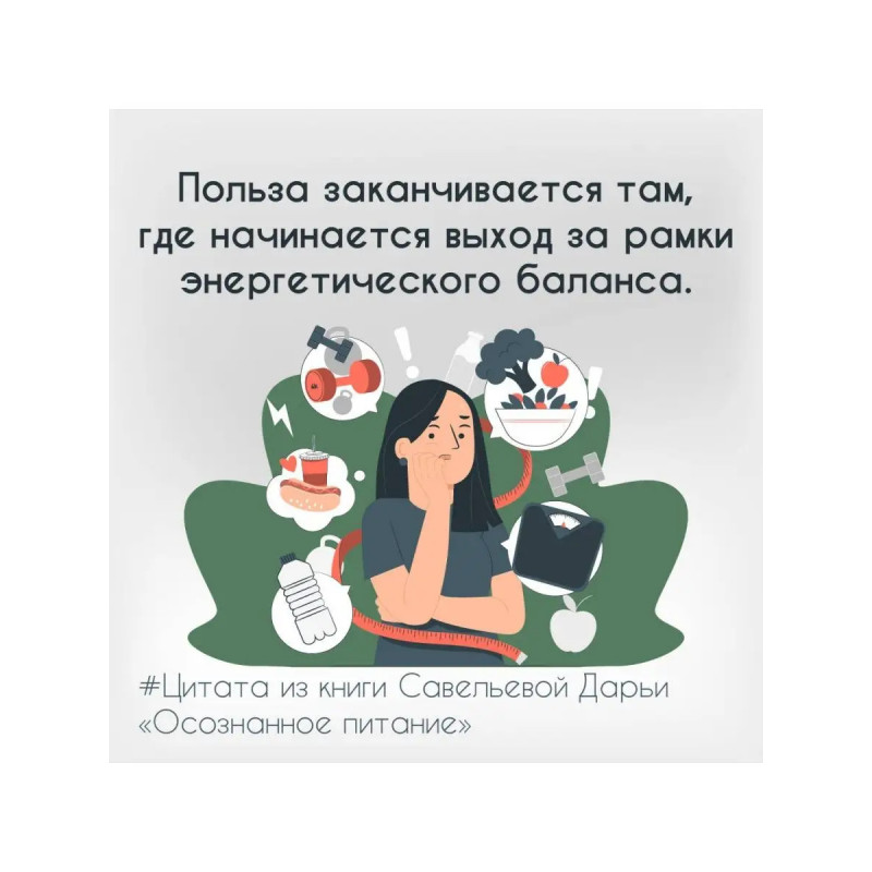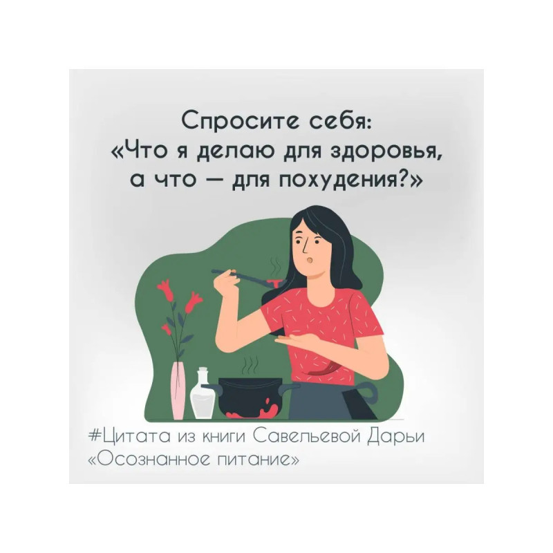 Я в какой-то момент осознала, что не даю никаких новых идей и инструкций, а исправляю, исправляю, исправляю ошибки, признается автор книги Осознанное питание Дарья Савельева. Задача Дарьи и настоящего руководства помочь вам обрести стройность плавно, уверенно и на такой срок, на какой вы сами захотите. Вы разберетесь в основах работы человеческого организма и метаболических процессов в частности и поймете, почему беспокоиться нужно в первую очередь не из-за лишнего веса, а из-за того, какие проблемы и неверные решения нас к нему приводят. Автор призывает читателей не действовать по шаблонам из интернета, не сидеть на опасных диетах, владеть достоверной информацией и обдумывать каждое свое действие. Осознанное питание и правильный образ жизни это не навязанные кем-то правила и идеалы, а ваш собственный путь!