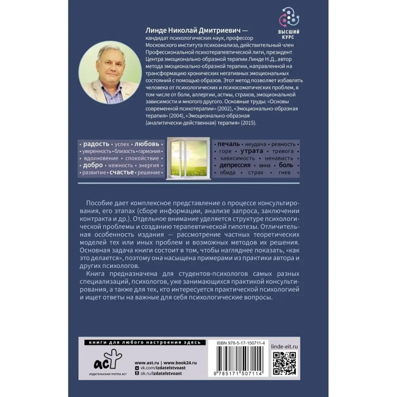Психологические консультирование: теория и практика пособие от кандидата психологических наук и автора метода эмоционально-образной терапии Николая Линде. Из книги вы получите всю необходимую информацию о: - психологических проблемах, их структурах и уровнях; - этапах консультирования; - инструментарии психолога; - типах запросов; - психологических моделях проблем и методах их решения (от фобий и тревоги до депрессии и печали).