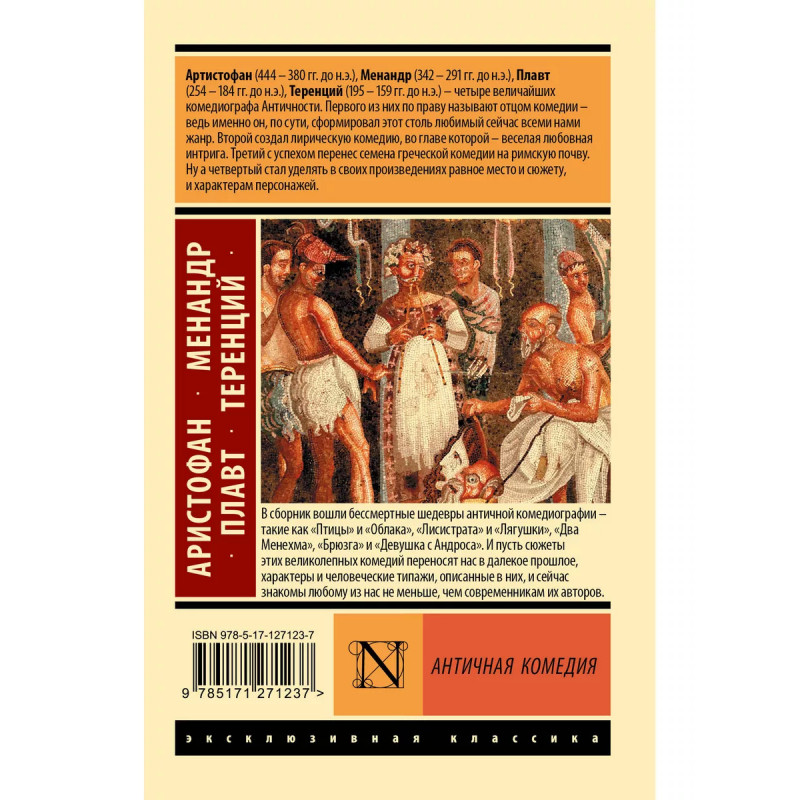 Античная комедия. В сборник вошли бессмертные шедевры античной комедиографии - такие, как "Птицы" и "Облака", "Лисистрата" и "Лягушки", "Два Менехма", "Брюзга" и "Девушка с Андроса". И пусть сюжеты этих великолепных комедий переносят нас в далекое прошлое, - характеры и человеческие типажи, описанные в них, и сейчас знакомы любому из нас не меньше, чем современникам их авторов.