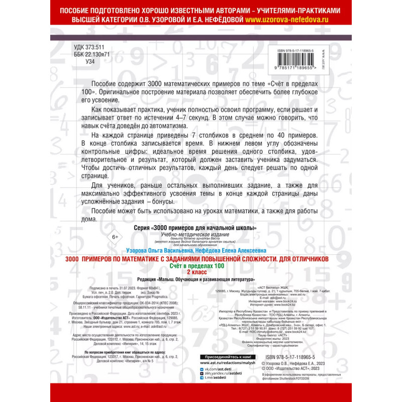 Оригинальное построение материала пособия позволяет обеспечить более глубокое усвоение темы Счёт в пределах 1. Как показывает практика, ученик полностью освоил программу, если решает пример и записывает ответ по истечении 4-7 секунд. В этом случае можно говорить, что навык счёта доведен до автоматизма. Для учеников, быстрее других выполнивших задание, а также для максимально эффективного усвоения темы в конце каждой страницы даны усложненные задания-бонусы. Пособие может быть использовано на уроках математики, а также для работы дома.