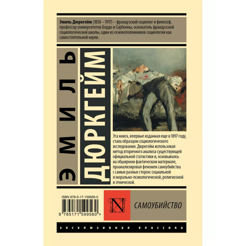 Самоубийство. Эта книга, впервые изданная еще в 1897 году, стала образцом социологического исследования. Дюркгейм использовал метод вторичного анализа существующей официальной статистики, и, основываясь на обширном фактическом материале, проанализировал феномен самоубийства с самых различных сторон: социальной и морально-психологической, религиозной и этнической.
