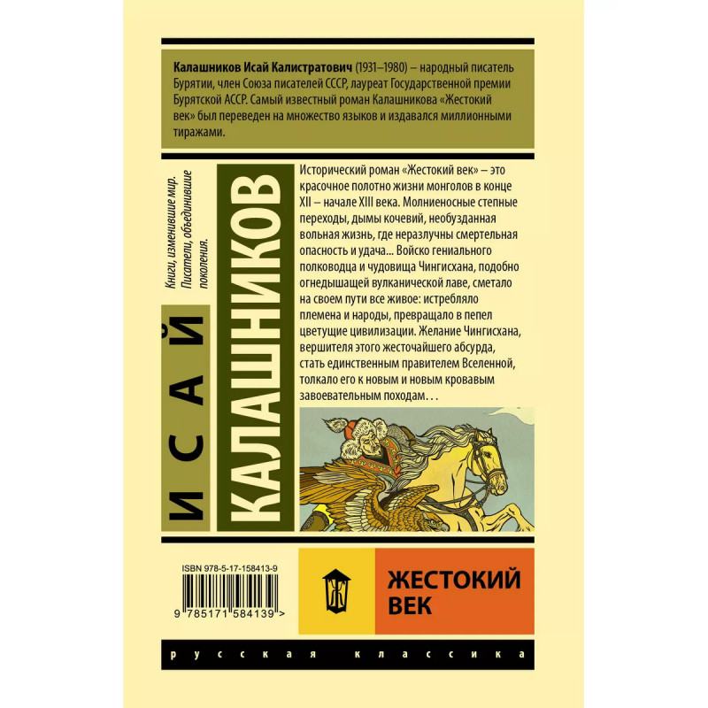 Жестокий век. Исторический роман "Жестокий век" - это красочное полотно жизни монголов в конце ХII - начале XIII века. Молниеносные степные переходы, дымы кочевий, необузданная вольная жизнь, где неразлучны смертельная опасность и удача... Войско гениального полководца и чудовища Чингисхана, подобно огнедышащей вулканической лаве, сметало на своем пути все живое: истребляло племена и народы, превращало в пепел цветущие цивилизации. Желание Чингисхана, вершителя этого жесточайшего абсурда, стать единственным правителем Вселенной, толкало его к новым и новым кровавым завоевательным походам