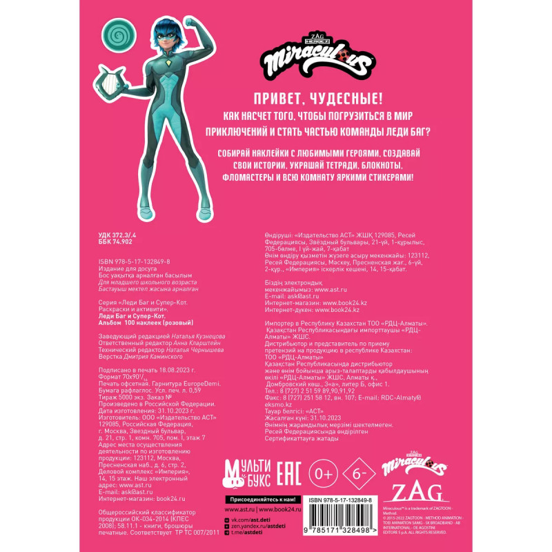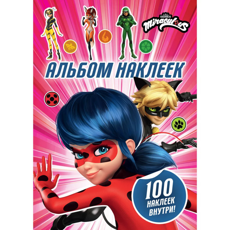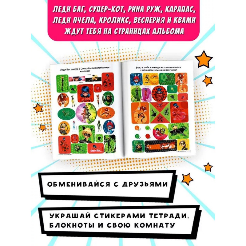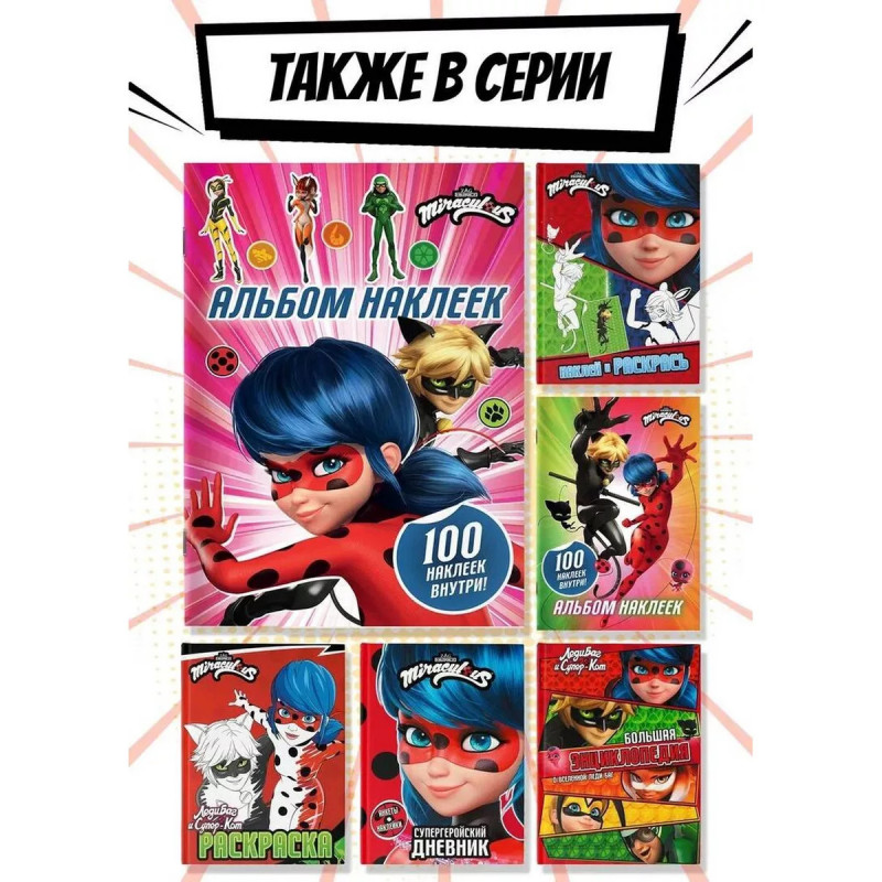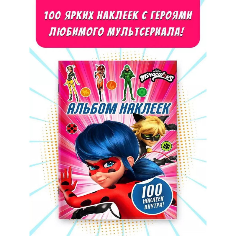 Леди Баг и Супер-Кот. Альбом 100 наклеек (розовый). Привет, чудесные! Как насчет того, чтобы погрузиться в мир приключений и стать частью команды Леди Баг? Собирай наклейки с любимыми героями, создавай свои истории, украшай тетради, блокноты, фломастеры и всю комнату яркими стикерами!