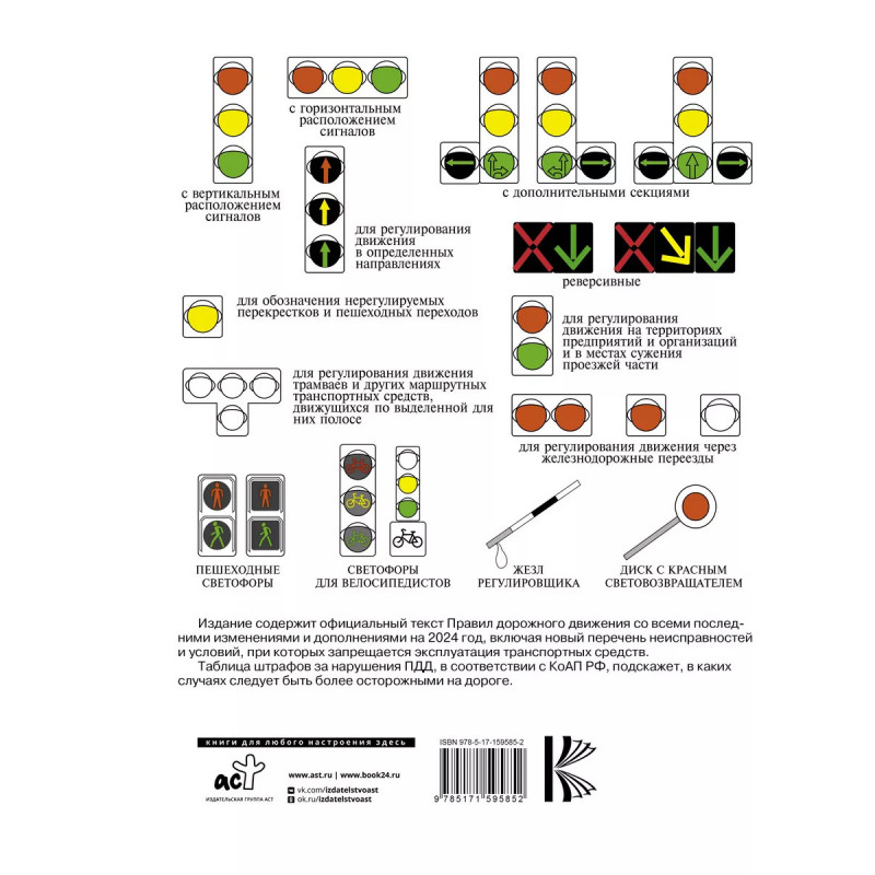 Правила дорожного движения на 2024 год. Действующая таблица штрафов и ответственность водителя, вклю. Издание содержит официальный текст Правил дорожного движения со всеми последними изменениями и дополнениями на 224 год, включая новый перечень неисправностей и условий, при которых запрещается эксплуатация транспортных средств. Таблица штрафов за нарушения ПДД, в соответствии с КоАП РФ, подскажет, в каких случаях следует быть более осторожными на дороге. Издание учитывает все изменения, опубликованные в официальных источниках на момент подписания издания в печать.