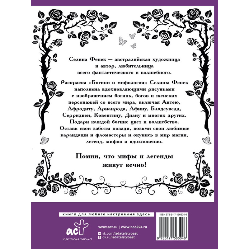 Богини и мифология. Раскраска "Богини и мифология" Селины Фенек - это волшебное путешествие в мир магии и вдохновения. Вы познакомитесь с богинями и женскими персонажами со всего мира, включая Антею, Афродиту, Арианрода, Афину, Блодеуведд, Серридвен, Ковентину, Диану и многих других. Откройте для себя мир мифов и легенд, подарите каждой богине цвет и волшебство. Возьмите свои любимые карандаши и фломастеры и погрузитесь в мир вдохновения!