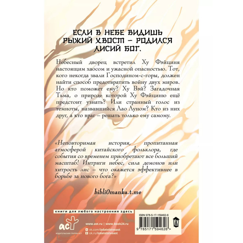 Девять хвостов бессмертного мастера. Том 2. Небесный дворец встретил Ху Фэйциня настоящим хаосом и ужасной опасностью. Тот, кого некогда звали Господином-с-горы, должен найти способ предотвратить войну двух миров. Но кто поможет ему? Ху Вэй? Загадочная Тьма, о природе которой Ху Фэйциню ещё предстоит узнать? Или странный голос из темноты, назвавшийся Лао Луном? Кто из них друг, а кто враг - решать только ему самому.