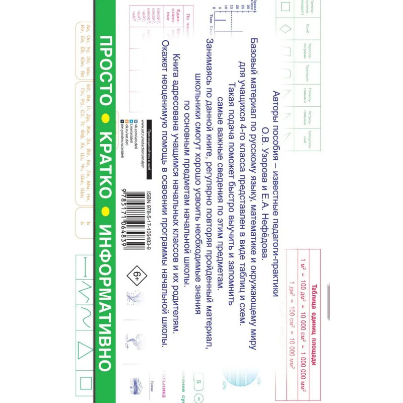 Учебное пособие известных педагогов-практиков О. В. Узоровой и Е. А. Нефёдовой включает схемы и таблицы. Такая подача материала поможет школьникам быстро выучить и запомнить самые важные сведения по русскому языку, математике и окружающему миру.Книга будет интересна школьникам начальных классов и их родителям. Весь материал представлен в виде таблиц и схем. Регулярные повторения пройденного материала помогут школьнику усвоить необходимые знания по основным предметам.Книга адресована учащимся начальных классов и окажет неоценимую помощь в освоении программы начальной школы.