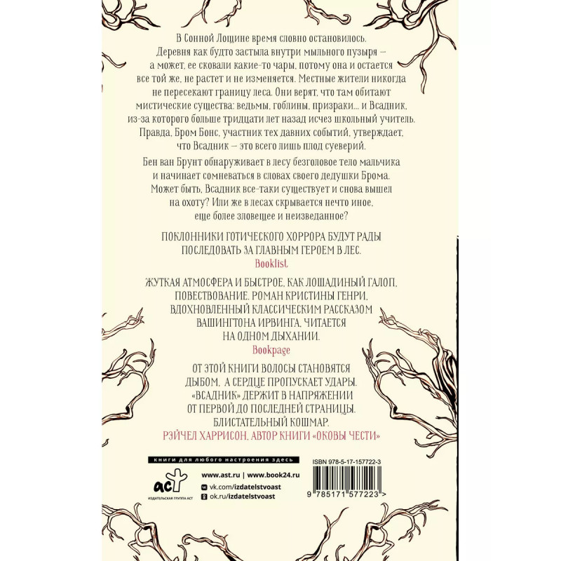 Всадник. Легенда Сонной Лощины. Переосмысление классики ужасов - готического рассказа Вашингтона Ирвинга "Легенды о Сонной лощине". От мастера ретеллинга и автора бестселлеров "Алиса", "Потерянный мальчишка" и "Русалка" по мотивам известных сказок. Для всех поклонников фильма "Сонная лощина"! Бен - четырнадцатилетний потомок Брома ван Брунта. Двадцать лет прошло со времен зловещих событий в Сонной лощине, и теперь история о Всаднике без головы - лишь страшная детская сказка. Однако по Лощине прокатывается серия убийств, в которых таинственным образом замешана семья ван Тасселей, и им волей-неволей приходится пересмотреть историю о Всаднике. Есть ли вероятность, что тот действительно существует? И, если да, какую страшную тайну он хранит?