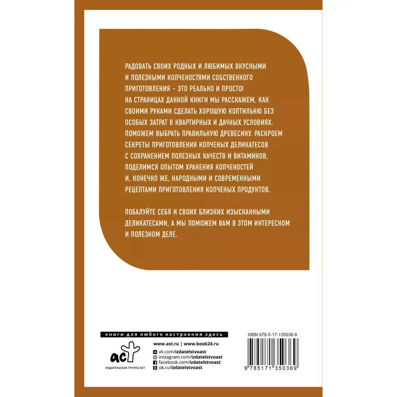 Домашняя коптильня. От конструкции до рецептов. Радовать своих родных и любимых вкусными и полезными копченостями собственного приготовления - это реально и просто! На страницах данной книги мы расскажем, как своими руками сделать хорошую коптильню без особых затрат в квартирных и дачных условиях. Поможем выбрать правильную древесину. Раскроем секреты приготовления копченых деликатесов с сохранением полезных качеств и витаминов, поделимся опытом хранения копченостей и, конечно же, народными и современными рецептами приготовления копченых продуктов. Побалуйте себя и своих близких изысканными деликатесами, а мы поможем вам в этом интересном и полезном деле.