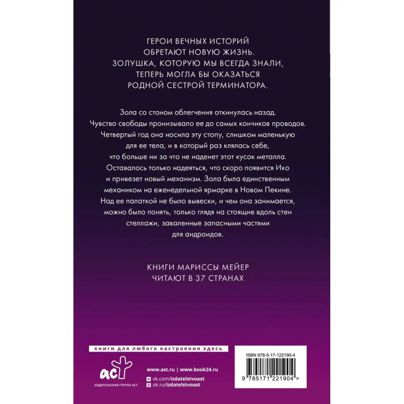Бестселлер The New York Times. Герои вечных историй обретают новую жизнь. Золушка, которую мы всегда знали, теперь могла бы оказаться родной сестрой Терминатора. Книги Мариссы Мейер читают в 37 странах.