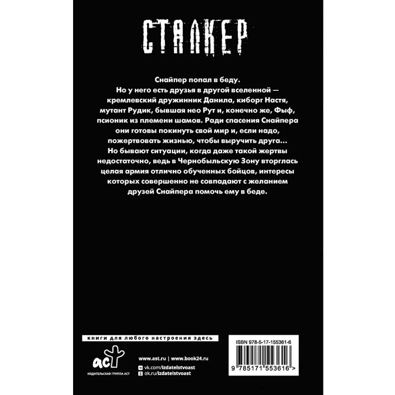 Закон Выброса. Снайпер попал в беду. Но у него есть друзья в другой вселенной - кремлевский дружинник Данила, киборг Настя, мутант Рудик, бывшая нео Рут и, конечно же, Фыф, псионик из племени шамов. Ради спасения Снайпера они готовы покинуть свой мир и, если надо, пожертвовать жизнью, чтобы выручить друга Но бывают ситуации, когда даже такой жертвы недостаточно, ведь в Чернобыльскую Зону вторглась целая армия отлично обученных бойцов, интересы которых совершенно не совпадают с желанием друзей Снайпера помочь ему в беде.