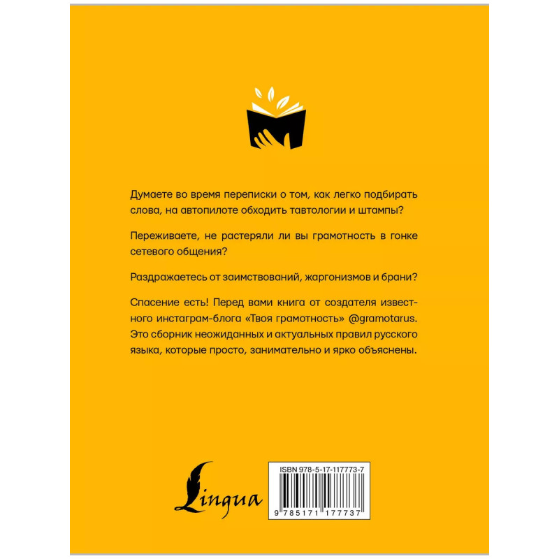Думаете во время переписки о том, как легко подбирать слова, на автопилоте обходить тавтологии и штампы? Переживаете, не растеряли ли вы грамотность в гонке сетевого общения? Раздражаетесь от заимствований, жаргонизмов и брани? Спасение есть! Перед вами книга от создателя известного блогера "Твоя грамотность" gramotarus. Это сборник неожиданных и актуальных правил русского языка, которые просто, занимательно и ярко объяснены. Вас ждёт увлекательное путешествие в мир лишних букв Н, ошибочно написанных Й, речевых излишеств, несклоняемых фамилий и множества слов, происхождение которых до сих пор было неочевидным.