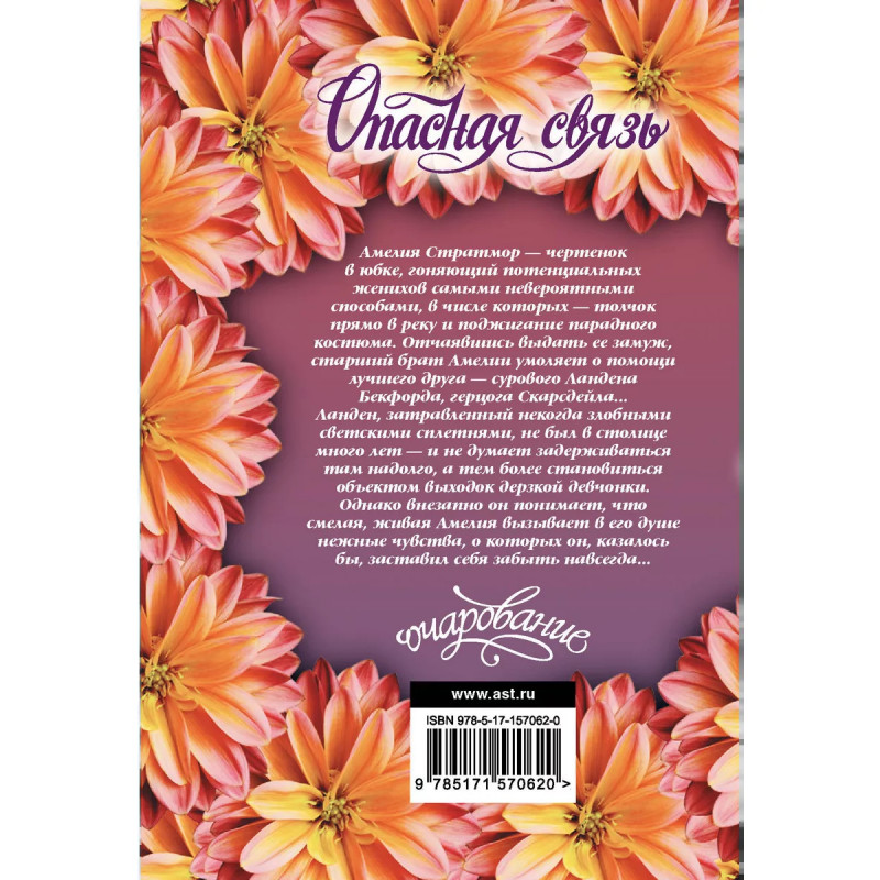 Опасная связь. Амелия Стратмор - чертенок в юбке, гоняющий потенциальных женихов самыми невероятными способами, в числе которых - толчок прямо в реку и поджигание парадного костюма. Отчаявшись выдать ее замуж, старший брат Амелии умоляет о помощи лучшего друга - сурового Ландена Бекфорда, герцога Скарсдейла Ланден, затравленный некогда злобными светскими сплетнями, не был в столице много лет - и не думает задерживаться там надолго, а тем более становиться объектом выходок дерзкой девчонки. Однако внезапно он понимает, что смелая, живая Амелия вызывает в его душе нежные чувства, о которых он, казалось бы, заставил себя забыть навсегда