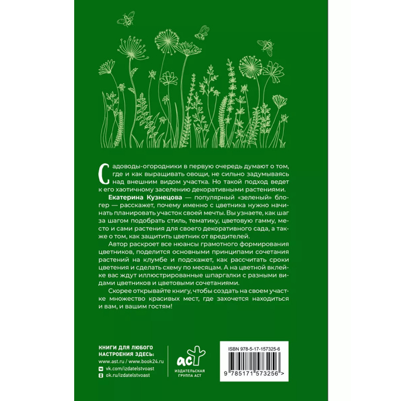 Любимый цветник. Простые шаги для создания декоративного сада. Вечный цветник без хлопот - и никакой магии! Яркий ухоженный цветник всегда был голубой мечтой любого дачника; это и украшение входной группы, и место общения с гостями, и отдых для глаз. Но как создать цветник непрерывного цветения на своем участке, чтобы он не отнимал слишком много времени, но радовал как можно дольше? Воплотить мечту в реальность поможет новая книга Екатерины Кузнецовой "Любимый цветник. Простые шаги для создания декоративного сада". Вас ждут полезные советы и увлекательные факты о цветущих растениях от Екатерины Кузнецовой - дипломированного биолога, профессионального садовода с 10-летним стажем. На страницах книги "Любимый цветник" вы узнаете: " как выбрать место для цветника, определить точку обзора, форму, цветовую гамму; " какои стиль и тематику цветника выбрать; " как подобрать подходящие растения для вашего участка и какие есть принципы сочетания растении на клумбе; " как рассчитать количество цветов и сделать ярусы; " как рассчитать таблицу цветения и сделать схему по месяцам; "