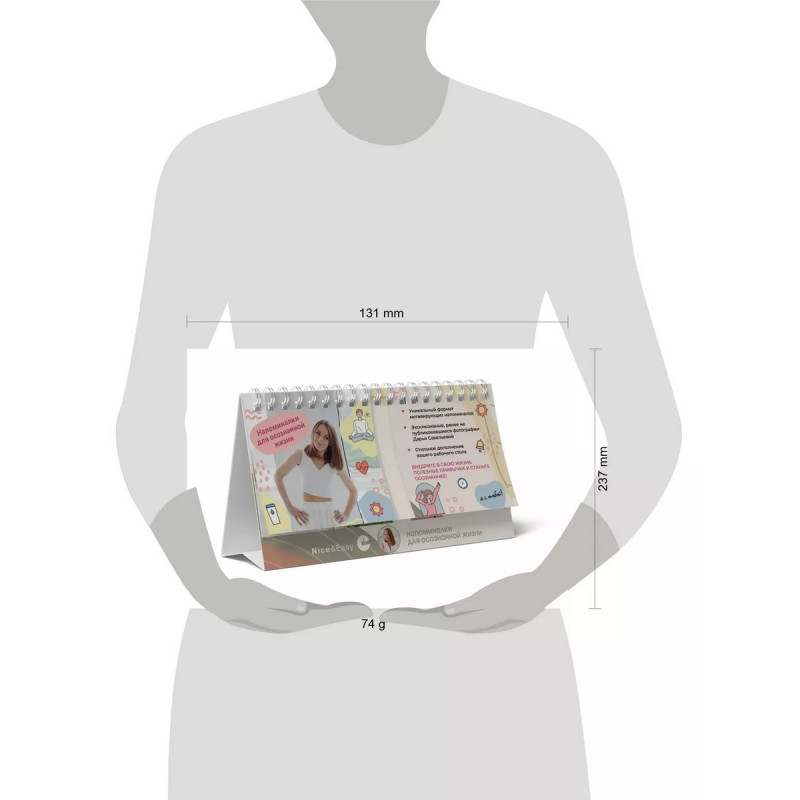 Напоминалки для осознанной жизни (с фото автора). Приготовьтесь сделать вашу жизнь еще более яркой и осознанной вместе с Дарьей Савельевой! Уникальный формат напоминалок, созданный Дарьей и ставший очень популярным в её блоге о чистом питании NiceEasy, теперь в удобном формате с двумя блоками. С помощью напоминалок на правой стороне вы сможете легко и с удовольствием внедрить в свою рутину правильные привычки. А на левой стороне вы найдете эксклюзивные, ранее не публиковавшиеся фотографии Дарьи Савельевой, иллюстрирующие описываемые привычки. "Напоминалки для осознанной жизни" станут стильным дополнением вашего рабочего стола, а компактный формат-домик не займет много места.