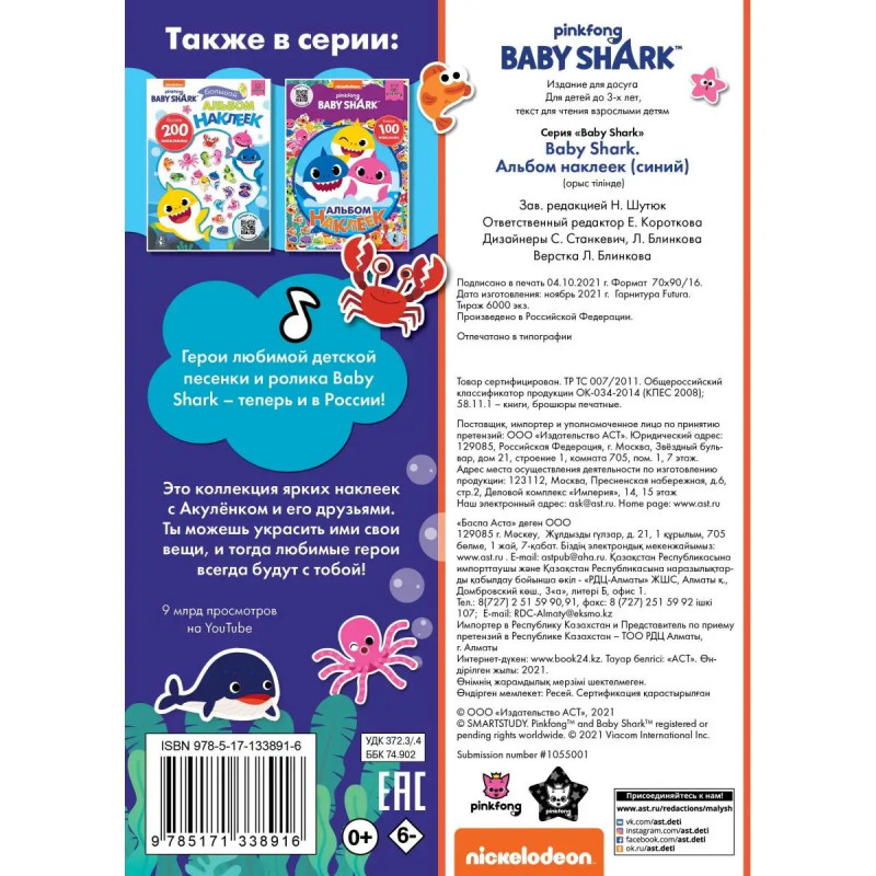Характеристики Baby Shark. Альбом наклеек (синий).