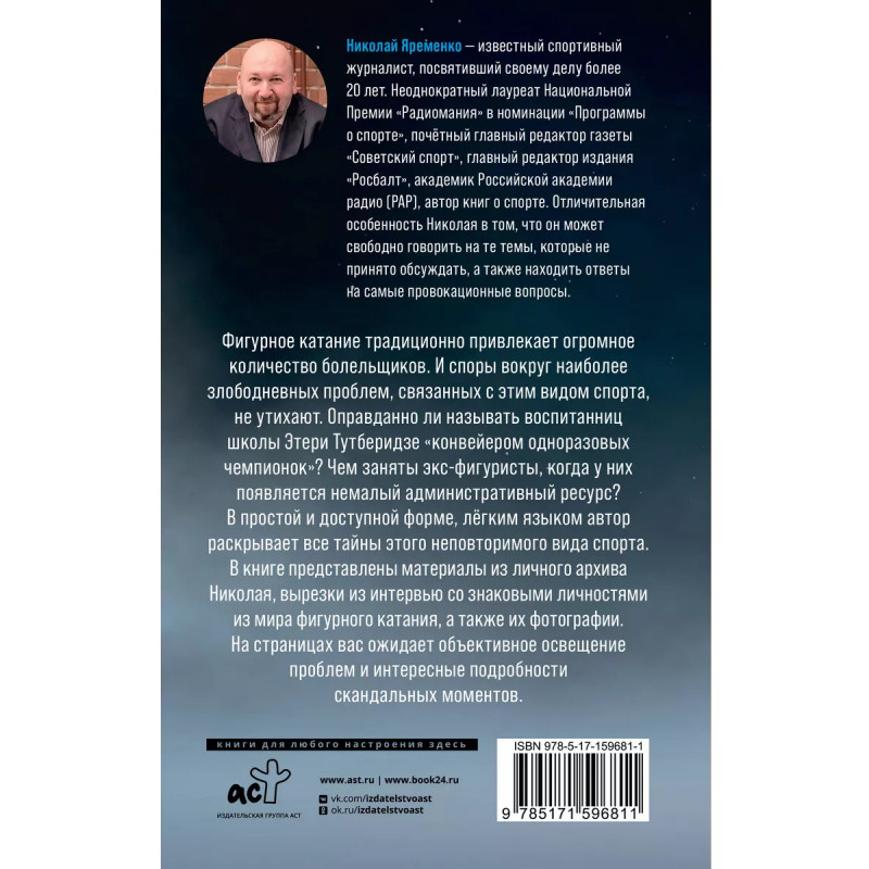 Фигурное катание. Честная история самого скандального вида спорта. Фигурное катание традиционно привлекает огромное количество болельщиков. И споры вокруг наиболее злободневных проблем, связанных с этим видом спорта, не утихают. Оправданно ли называть воспитанниц школы Этери Тутберидзе "конвейером одноразовых чемпионок"? Чем заняты экс-фигуристы, когда у них появляется немалый административный ресурс? Николай Яременко - известный спортивный журналист, автор многих книг о спорте. В простой и доступной форме, лёгким языком он даёт ответы на все главные вопросы этого неповторимого вида спорта.
