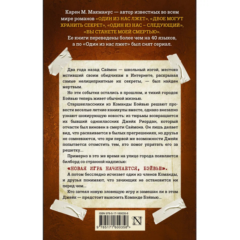 Один из нас вернулся. Продолжение романов "Один из нас лжет" и "Один из нас - следующий". Заключительная часть культовой трилогии! Книги Карен Макманус переведены на сорок два языка, а суммарный тираж превысил 7 000 000 экземпляров!