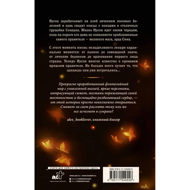 Первая книга серии Книжный клуб Медины Мирай, иллюстрированное ч/б издание новинки в жанре young adult. Понравится поклонникам Благословения небожителей и Магистра дьявольского культа. В темных улочках столичных трущоб Скидана, где жизнь представляет собой борьбу за выживание, незадачливый лекарь Нуска лечит половые болезни, чтобы прокормить себя. Его простая жизнь круто меняется, когда на его пороге появляются посланцы великого мага, правителя государства эрда Сина. Нуска волей судьбы оказывается втянут в мир интриг, тайн и заговоров знати. Теперь, обладая знаниями о кровавом прошлом правителя, Нуске открываются новые горизонты и возможности, а его секреты угрожают положению Эрда Сина. Разоблачение страшной истины о его встрече с правителем в прошлом подвергает его невероятной опасности, а еще может изменить судьбу страны.