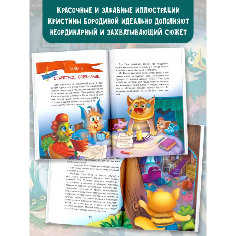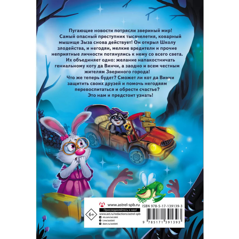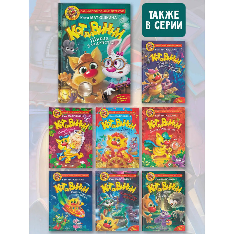 Кот да Винчи. Школа злодейства. Суммарный тираж книг автора - более 4 млн экземпляров. Книги Кати Матюшкиной издаются в России и за рубежом. Ура! Долгожданная новинка! Восьмая книга самого популярного цикла Кати Матюшкиной "Кот да Винчи". Об этом коте слышали многие, а кто о нём читал, наверняка его полюбили. Ведь устоять перед обаянием большого рыжего гениального кота просто невозможно! Он с лёгкостью и бесстрашием раскрывает самые сложные дела. Звери бегут к нему за помощью и с восхищением следят за его расследованиями. И только одному существу - маленькому фиолетовому зверьку по имени Зыза - не даёт покоя его слава и талант кота да Винчи. Вас ждут увлекательные приключения кота да Винчи и его друзей, новые злодейства предприимчивого фиолетового мышонка, ароматное волшебство, таинственная Школа, странные существа и даже говорящая рыба Красочные и забавные иллюстрации Кристины Бородиной. Весёлое и увлекательное чтение для детей старшего дошкольного и младшего школьного возраста. Первая книга для самостоятельного чтения. Понравится юным де