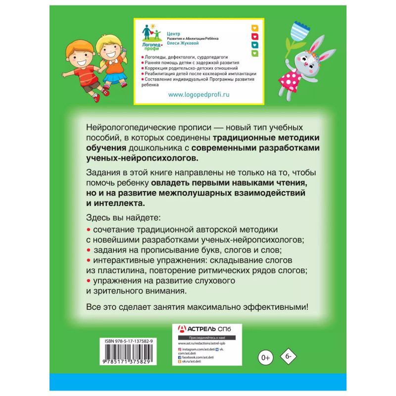 Нейрологопедические прописи: читаем слоги и слова. Нейрологопедические прописи - новый тип учебных пособий, в которых соединены традиционные методики обучения и развития дошкольника с современными практическими разработками ведущих российских ученых-нейропсихологов. Занятие по этой книге поможет дошкольнику овладеть первыми навыками чтения, научиться читать слоги и простые слова. Помимо привычных заданий (прописывание слогов и слов), здесь вы найдете интерактивные упражнения: складывание слогов из пластилина, повторение ритмических рядов слогов, а также упражнения на развитие слухового и зрительного внимания. Для дошкольного возраста.