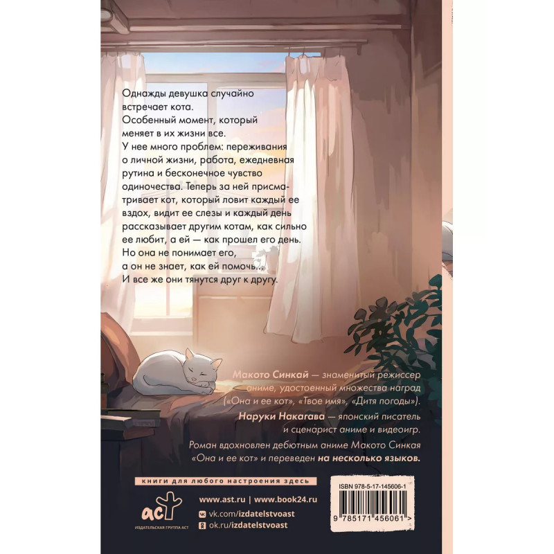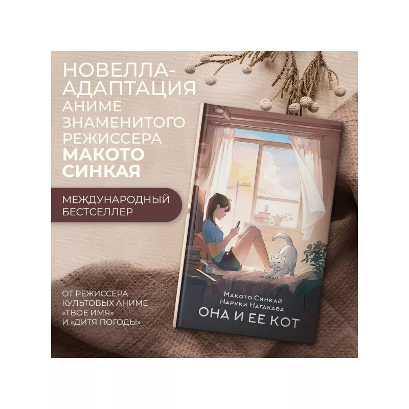 Она и ее кот. " Новелла-адаптация аниме знаменитого режиссера Макото Синкая! " Международный бестселлер! " Макото Синкай режиссер культовых аниме "Твое имя", "Дитя погоды" и других!