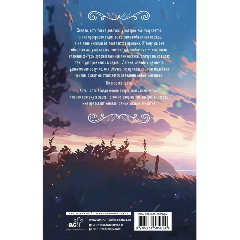 Вольный ветер. Знаете, есть такие девочки, у которых все получается. На них прекрасно сидит даже самая объемная одежда, а на лице никогда не появляются прыщики. К тому же они обязательно увлекаются чем-нибудь необычным - исполняют сложные фигуры художественной гимнастики, скачут на лошадях так, будто родились в седле Легкие, ловкие и какие-то удивительно везучие, они обычно, не прикладывая ни малейших усилий, сразу же становятся звездами любой компании. Но я не из таких. Хотя хотя всегда можно попробовать измениться! Именно поэтому я здесь, в конно-спортивном лагере, и, похоже, мне предстоит немало самых разных открытий.