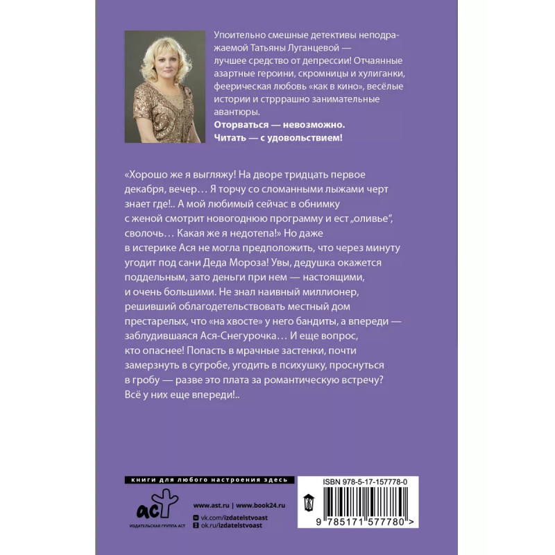 Любовь-морковь... и точка. - Новинка в серии "Иронический детектив"! - Сборник, в который вошли роман "Бизнес-ланч для Серого Волка" и новый рассказ Татьяны Луганцевой "Любовь-морковь... и точка". - Понравится поклонникам творчества Дарьи Донцовой и Натальи Александровы. 31-е декабря, вечер, а Ася застряла на лыжах где-то в глуши, и спасти её может только Дедушка Мороз. Только дедушек нам не нужно, а вот молодой миллионер на машине давайте, пожалуйста, и побыстрее, а то Ася совсем заледенела в сугробе неудач. Вот только девушку ждёт не чудесное спасение, а опасные приключения в канун самого волшебного праздника.