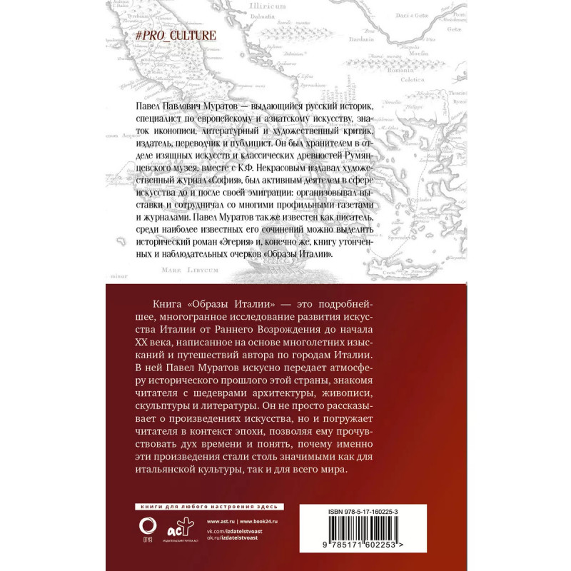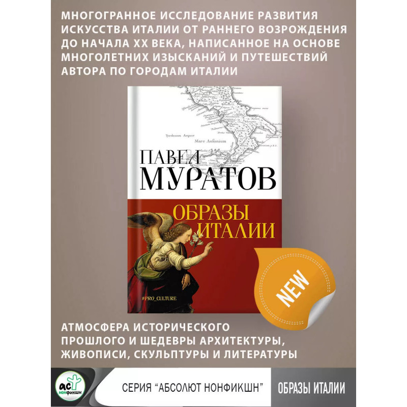 Образы Италии. Павел Павлович Муратов - выдающийся русский историк, специалист по европейскому и азиатскому искусству, знаток иконописи, литературный и художественный критик, издатель, переводчик и публицист. Он был хранителем в отделе изящных искусств и классических древностей Румянцевского музея, вместе с К.Ф. Некрасовым издавал художественный журнал "София", был активным деятелем в сфере искусства до и после своей эмиграции: организовывал выставки и сотрудничал со многими профильными газетами и журналами. Павел Муратов также известен как писатель, среди наиболее известных его сочинений можно выделить исторический роман "Эгерия" и, конечно же, книгу утонченных и наблюдательных очерков "Образы Италии". Книга "Образы Италии" - это подробнейшее многогранное исследование развития искусства Италии от Раннего Возрождения до начала XX века, написанное на основе многолетних изысканий и путешествий автора по городам Италии. В ней Павел Муратов искусно передает атмосферу исторического прошлого этой страны, знакомя читателя с шедевр