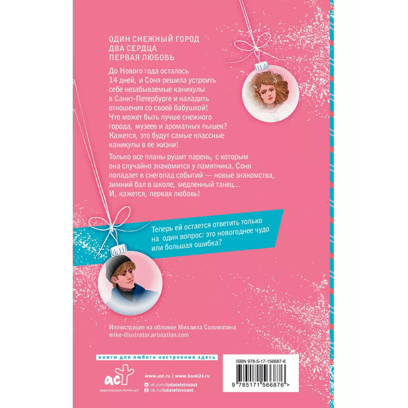 Четырнадцать дней до.... Вот она, самостоятельная жизнь. Впереди четыре прекрасных часа с музыкой в мчащем по заснежанным просторам "Сапсане" и ожидание Петербурга - самого романтичного города на земле. Соня никогда не совершала безумных поступков, но сейчас, в канун Нового года, она поняла: в её жизни настало время перемен. Новые знакомства, неожиданные открытия, удивительные сюрпризы - и, может быть, долгожданная первая любовь?.. Идеальная книга для тех, кто хочет настроиться на зимнее настроение и найти силы для того, чтобы разобраться в себе.