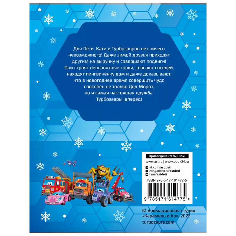 Турбозавры. Зимние истории. Для Пети, Кати и Турбозавров нет ничего невозможного! Даже зимой друзья приходят другим на выручку и совершают подвиги! Они строят невероятные горки, спасают соседей, находят пингвинёнку дом и даже доказывают, что в новогоднее время совершить чудо способен не только Дед Мороз, но и самая настоящая дружба. Турбозавры, вперёд!