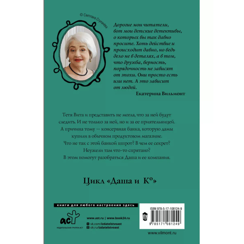 Секрет консервной банки. Тетя Вита и представить не могла, что за ней будут следить. И не только за ней, но и за приятельницей. А причина тому - консервная банка, которую дамы купили в обычном продуктовом магазине. Что не так с этой банкой шпрот? В чем ее секрет? Неужели там что-то спрятано? В этом могут разобраться Даша и ее компания.