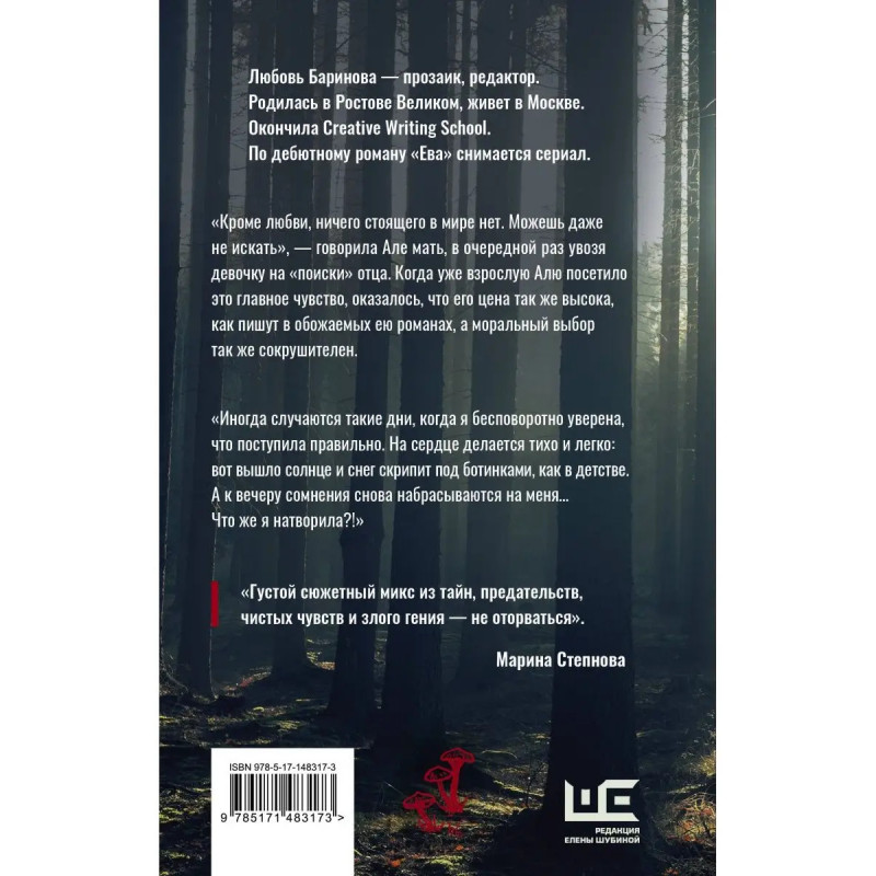 Роман Любови Бариновой Кто ты будешь такой? сложная, многослойная история любви и предательства. Какой толк в любви, если не жертвуешь ничем? героям, как и читателям, придется самостоятельно подтвердить или опровергнуть эту идею. Книга-загадка. Этот роман полон неожиданных тайн прошлого они прячутся между страницами промокшей книги, в старой коробке из-под обуви, в подделке неизвестного полотна знаменитого мастера. Неожиданные повороты сюжета. Автор описывает жизни обыкновенных, на первый взгляд, персонажей и на каждой странице напоминает читателям о том, что все мы не те, кем кажемся другим. Чего бы вы ни ждали в финале, он вас изумит. Мастерство демиурга. Любовь Баринова раскладывает роман, как пасьянс, неспешно раскрывая карты, умело чередуя прошлое с настоящим, намекая на смутное будущее.