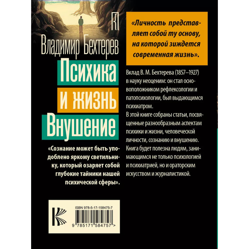 Психика и жизнь. Внушение. "Личность представляет собой ту основу, на которой зиждется современная жизнь". Вклад В. М. Бехтерева (1857-1927) в науку неоценим: он стал основоположником рефлексологии и патопсихологии, был выдающимся психиатром. В этой книге собраны статьи, посвященные разнообразным аспектам психики и жизни, человеческой личности, сознанию и внушению. Книга будет полезна людям, занимающимся не только психологией и психиатрией, но и ораторским искусством и журналистикой. "Сознание может быть уподоблено яркому светильнику, который озаряет собой глубокие тайники нашей психической сферы".