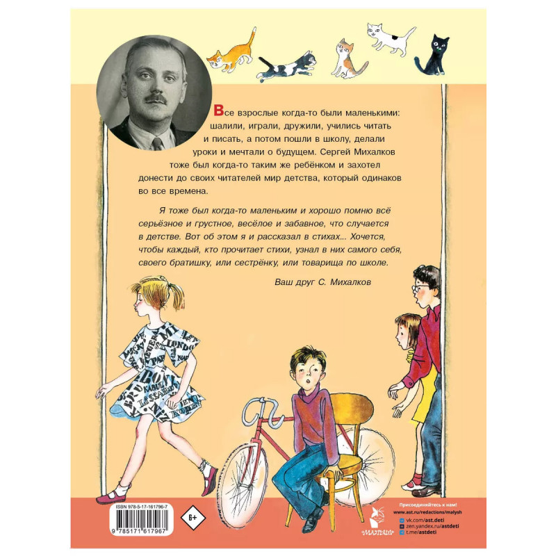 Я тоже был маленьким. Рисунки С. Острова. Все взрослые когда-то были маленькими: шалили, играли, дружили, учились читать и писать, а потом пошли в школу, делали уроки и мечтали о будущем. Сергей Михалков тоже был когда-то таким же ребёнком и захотел донести до своих читателей мир детства, который одинаков во все времена. Я тоже был когда-то маленьким и хорошо помню всё серьёзное и грустное, весёлое и забавное, что случается в детстве. Вот об этом я и рассказал в стихах... Хочется, чтобы каждый, кто прочитает стихи, узнал в них самого себя, своего братишку, или сестрёнку, или товарища по школе. Ваш друг С. Михалков