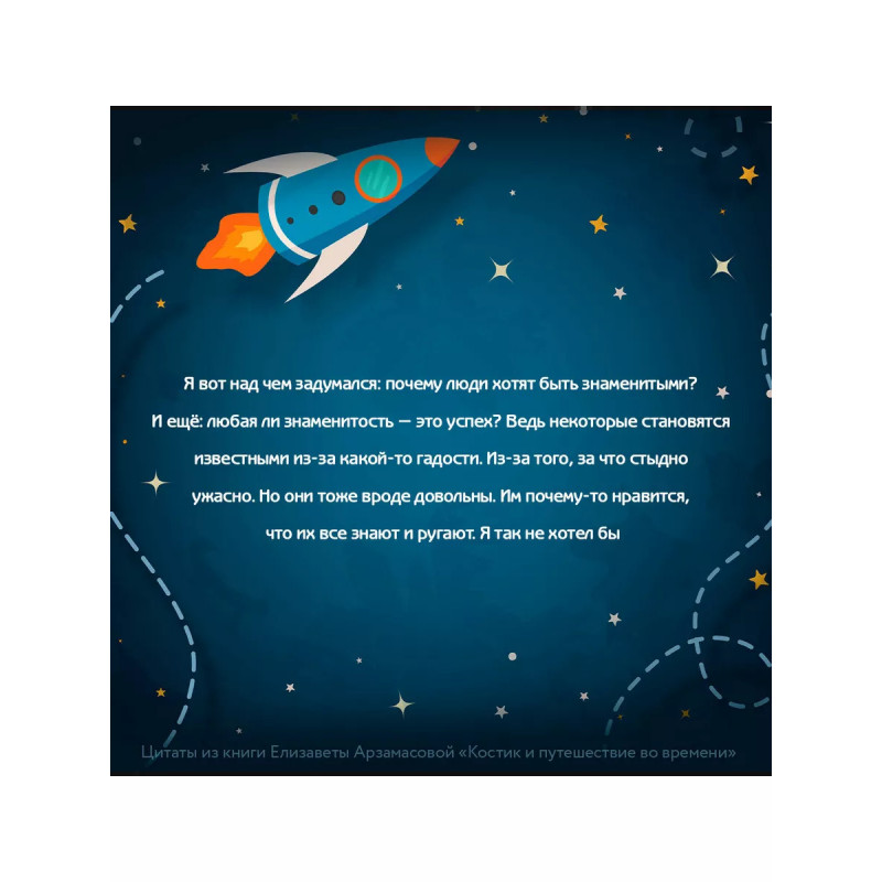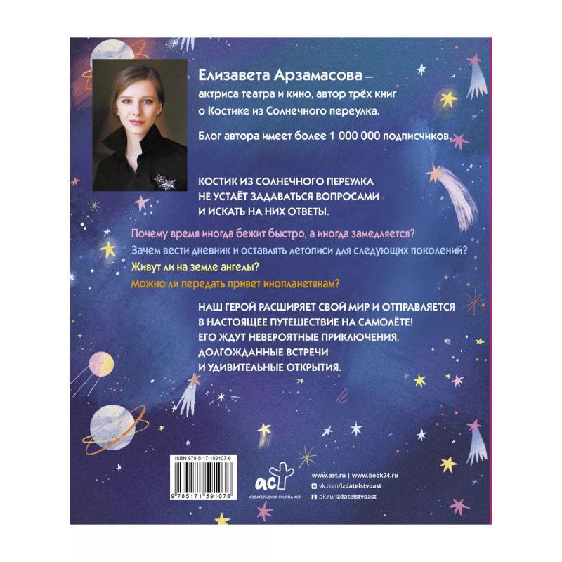 Костик и путешествие во времени. Истории про космос, тайные послания и ангела в жёлтой шляпе. А вы знали, что Галина Сергеевна из "Папиных дочек" пишет книги? Лиза Арзамасова - исполнительница роли Галины Сергеевны в знаменитом семейном ситкоме "Папины дочки", много лет не сходившем с российских телеэкранов, а теперь вернувшийся на канал СТС Love. Но не все поклонники сериала знают, что Лиза Арзамасова - не только актриса театра и кино, но еще и талантливый писатель. Лиза - автор уже полюбившихся взрослым и детям добрых историй о Костике из Солнечного переулка. И совсем скоро читатели смогут оценить новую книгу: "Костик и путешествие во времени. Истории про космос, тайные послания и ангела в жёлтой шляпе". Костик - любопытный мальчик, который пытается найти ответы на взрослые и важные вопросы, например, как найти что-то хорошее во вредной соседке? Или, трудно ли быть знаменитостью? Что значит поступать "по-человечески" и у всех ли людей "сердце в правильном месте"? Участниками новых приключений становятся одноклассники, соседи и даже первая любовь Костика! Они соберутся, чтобы раскрыть тайны иноплане
