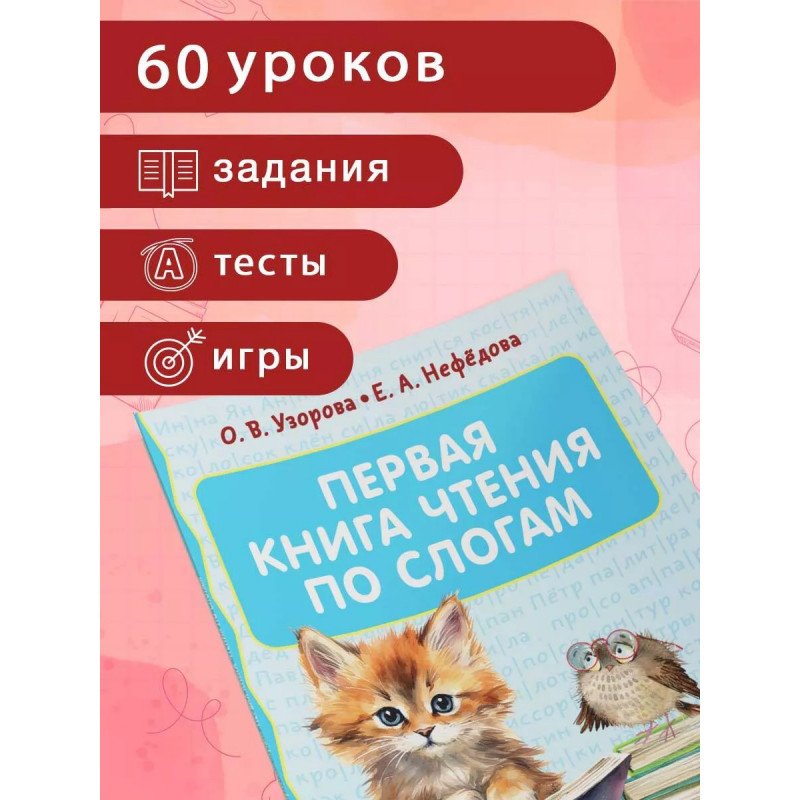 Пособие Первая книга чтения по слогам - вторая книга полного курса обучения чтению - уникальной системы обучения смысловому чтению с нуля до беглого выразительного чтения. Книга содержит различные игровые обучающие и развивающие задания, выполняя которые ребёнок легко научится читать по слогам более сложные по структуре слова, предложения и короткие тексты, улучшит навык чтения, разовьёт внимание, память, речь. Первое чтение после азбуки. Начальный уровень Первая книга чтения по слогам Короткие тексты для первого чтения Скорочтение. Учусь быстро читать и понимать текст Все, что поможет ребенку подготовиться к школе, стать успешным в учёбе, вы найдёте в книгах известных авторов О.В. Узоровой и Е.А. Нефёдовой: обучение чтению, читаем по слогам, развивающее чтение, развивающее обучение, подготовка к школе, раннее развитие, дошкольное обучение.