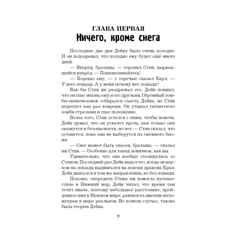 Легенда Дейва, деревенского жителя в Майнкрафт. Книга 2. Лёд и пламя. Приключения деревенского жителя Дейва и его друзей продолжаются! Герои движутся к своей цели и намерены во что бы то ни стало попасть в Край и победить дракона. Им придётся пройти через снежные, пустынные и болотные биомы, встретиться со странниками Края, иссушителем и ведьмами. Найти новых друзей и столкнуться со старыми врагами. Герои и злодеи, гасты и ифриты, зомби и криперы, Стив и Хиробрин - все знакомые персонажи встретятся на страницах этой невероятной серии. Сюжет держит в напряжении до последней страницы, а весёлые шутки и запоминающиеся персонажи делают это издание лучшим подарком для фанатов игры.