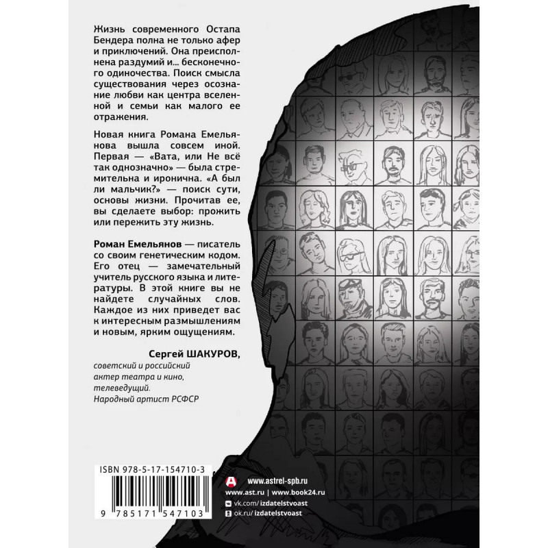Жизнь современного Остапа Бендера полна не только афер и приключений. Она преисполнена раздумий и бесконечного одиночества. Поиск смысла существования через осознание любви как центра Вселенной и семьи как малого ее отражения. Новая книга Романа Емельянова вышла совсем иной. Первая - "Вата, или Не всё так однозначно"- была стремительна и иронична. "А был ли мальчик?"- поиск сути, основы жизни. Прочитав ее, вы сделаете выбор: прожить или пережить эту жизнь. Роман Емельянов - писатель со своим генетическим кодом. Его отец - замечательный учитель русского языка и литературы. В этой книге вы не найдете случайных слов. Каждое из них приведет вас к интересным размышлениям и новым, ярким ощущениям. Сергей Шакуров, советский и российский актер театра и кино, телеведущий. Народный артист РСФСР