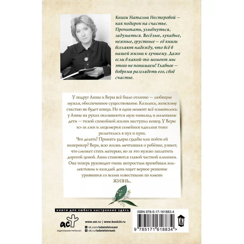 Книга от автора бестселлеров "Жребий праведных грешниц" и "Позвони в мою дверь"! Женский роман для поклонников М. Метлицкой и Е. Вильмонт. Анна и Вера - давние подруги, жизням которых можно только позавидовать. Обе финансово обеспечены, у обеих в браке царят любовь и взаимопонимание. Но как часто бывает, привычный мир рушится всего в одно мгновение. У Анны это случилось, когда ее муж, Юрий, получил тяжелую черепно-мозговую травму, после которой так и не смог оправиться. Нелепая случайность превратила их жизнь в ад. Анна осталась одна на руках с мужем-инвалидом и двумя детьми: непослушной, взбалмошной дочкой и новорожденным сыном Верин мир перевернулся после того, как семейная идиллия разлетелась в пух и прах - отношениям с мужем пришел конец. Всему виной ложь и лицемерие. А потом Вера, мечтавшая о ребенке, узнает, что наконец сможет стать матерью. Но какой ценой Теперь Анне и Вере понадобятся силы, стойкость и мужество, чтобы преодолеть выпавшие на их долю испытания и вновь обрести такое простое женское сча