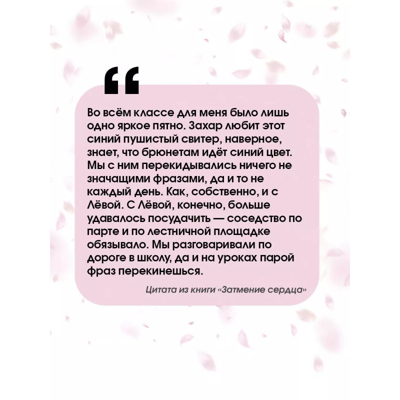 Затмение сердца. Почему всегда влюбляешься не в того? Наверное, затем, чтобы было о ком страдать! У Ветки появился замечательный сосед Лёва. Красивый парень, умный, музыкально одарённый. Все завидуют девочке, когда видят их вдвоём. Виолетта понимает все его достоинства, только влюблена она в Захара. И ничего с этим не поделать. Или сердцу прикажешь? Кто знает, куда заведут Ветку её чувства