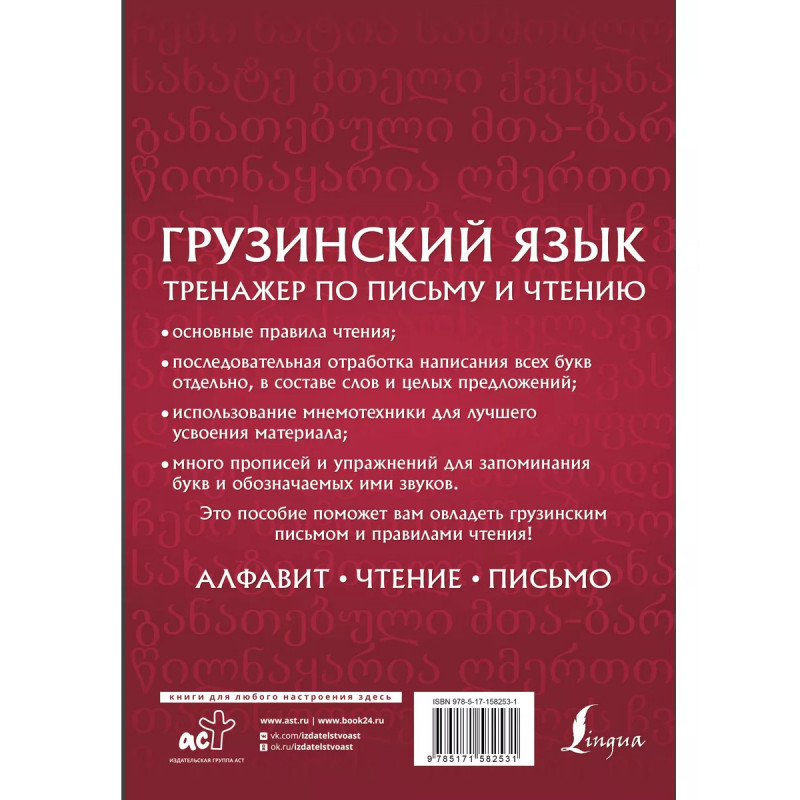 Характеристики Грузинский язык. Тренажер по письму и чтению.