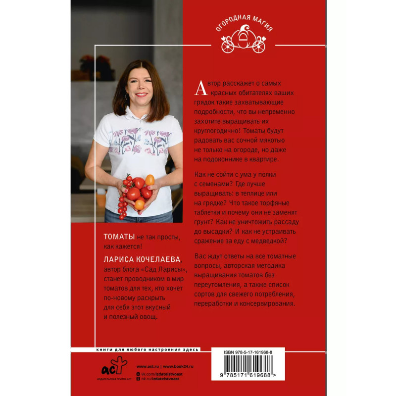 Мечтаете о богатом урожае томатов? Сочные и полезные томаты нравятся и взрослым и детям, но как подступиться к этому капризному растению и получить богатый урожай на своем огороде? Цветовод-профессионал с 40-летним опытом, создатель школы садового и ландшафтного творчества "САД как ИСКУССТВО" Лариса Кочелаева раскроет все секреты выращивания томата. В новой книге Ларисы Кочелаевой "Томат. Выращиваем, ухаживаем, едим" вы узнаете все о выращивании томатов, секретах и тонкостях ухода за ними. На страницах книги автор рассказывает обо всех этапах выращивания томатов - от выбора семян до высадки их в грунт, от ухода за кустами до борьбы с болезнями и вредителями. Автор раскроет секреты своей системы ухода и поделится ценными знаниями, приобретенными за десятки лет кропотливои работы. Книга станет отличным помощником для новичков, мечтающих вырастить свои первые томаты, и для опытных огородников, которые познакомятся с авторскими методами выращивания и ухода. Соберите богатый урожай сочных томатов вместе с книгой